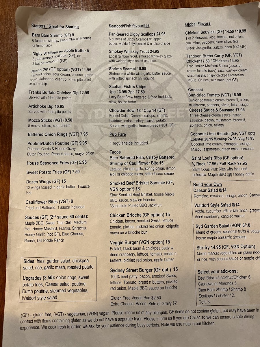 Welcome to Sydney Street Pub and Cafe, a hidden gem located at 14 Sydney St, Digby, NS. This charming establishment offers an array of mouthwatering dishes that celebrate local seafood and global flavors. From the rich Chowder Bowl featuring fresh scallops and haddock to the succulent Pan-Seared Digby Scallops served with a delightful Waldorf salad, every plate is a testament to culinary excellence. Guests rave about the fresh ingredients and thoughtful presentation, creating a warm and inviting atmosphere.